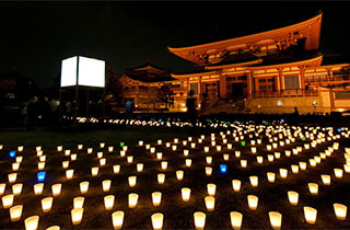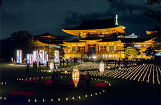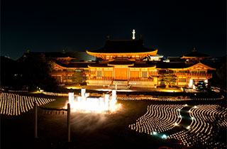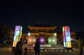 色鮮やかに光る花など、大小さまざまな灯りが、